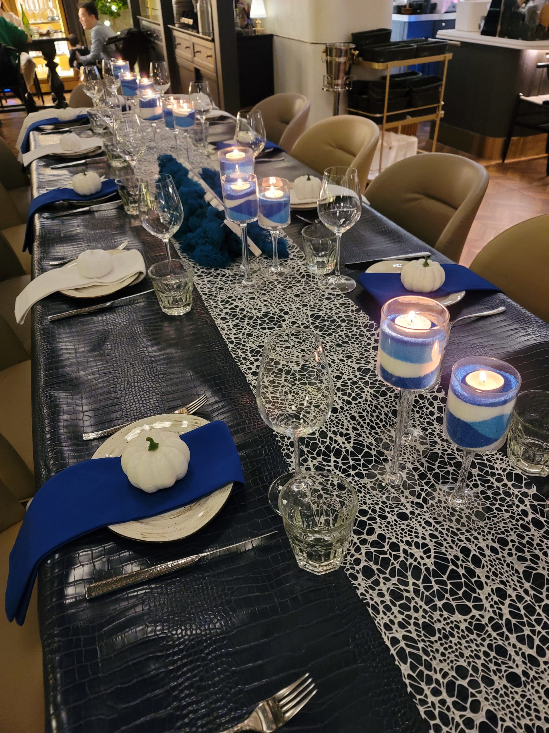 Part of tablescaping is to create a visual impact. That impact should continue around the entire table, not just on the table itself.