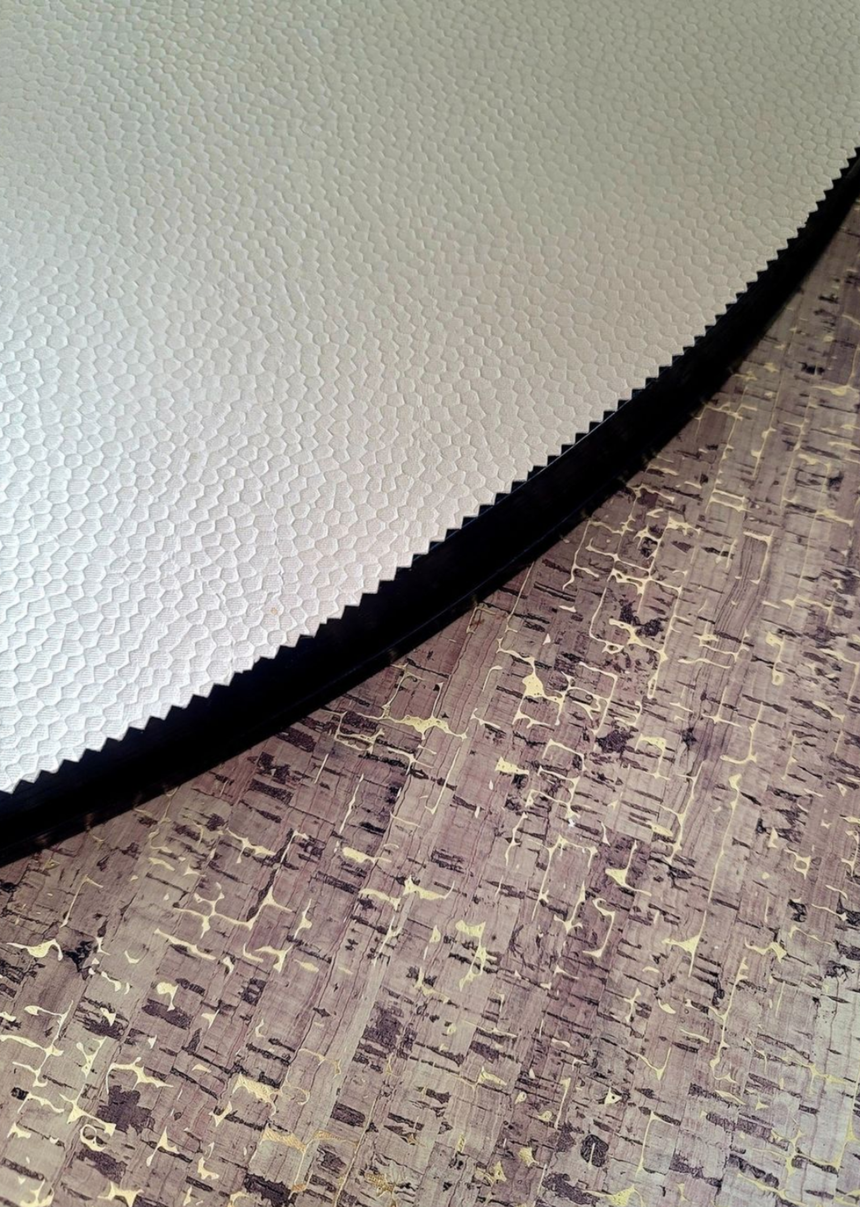 Textured leather is one of my favorites. All I have to do is trim the edges with a zig-zag scissors and voila – I have a textured tablecloth!