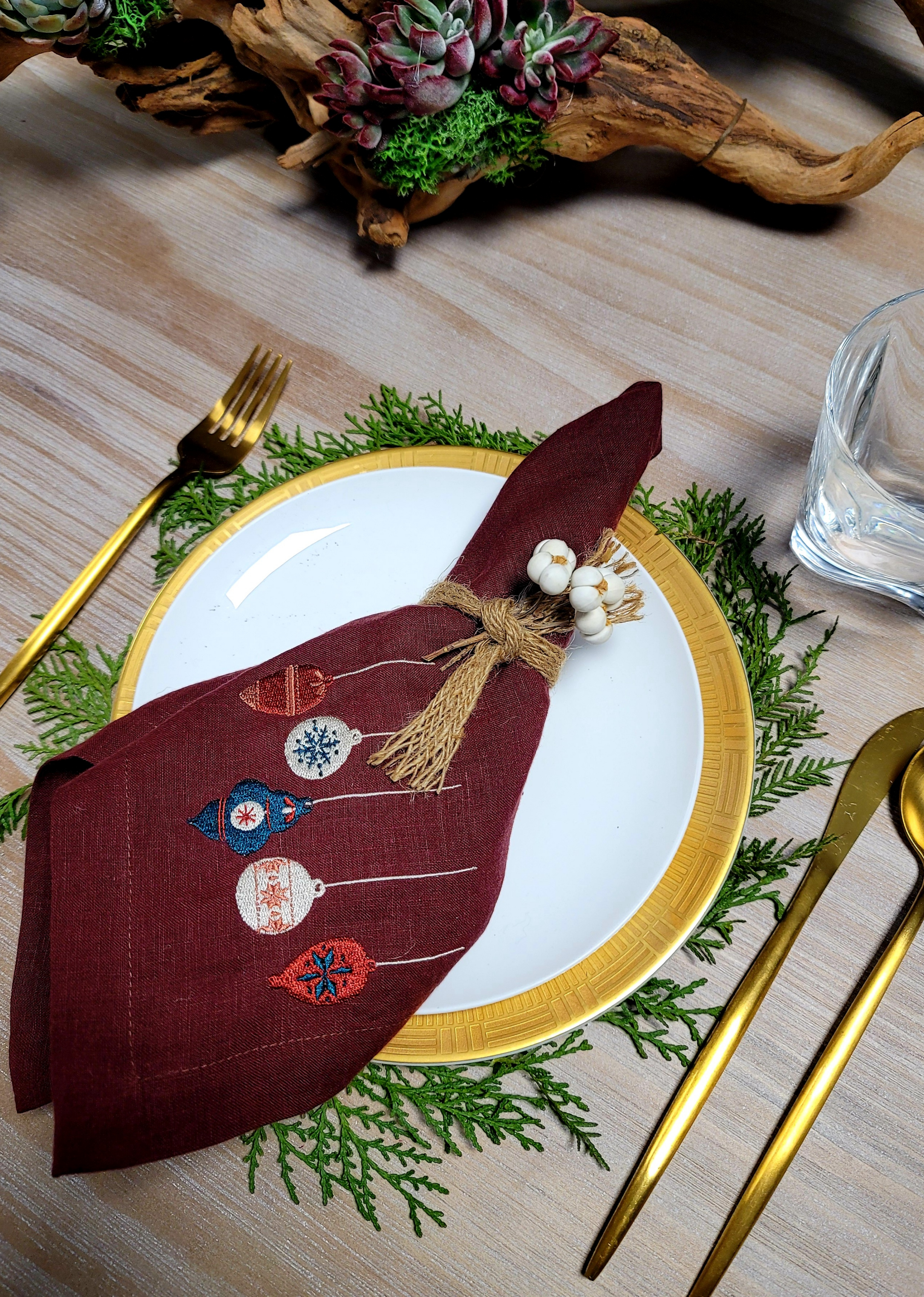 Below you can see a gallery of DIY napkin rings I’ve created using rope and Studio NooSH cloth napkins.